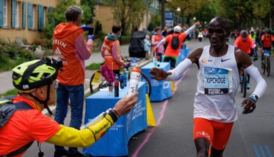 El aguador de Kipchoge y sus celebraciones en cada avituallamiento.