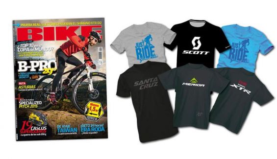 Este mes BIKE viene muy bien acompañado. Si tú quieres, por sólo 4,99€ podrás llevarte BIKE con camiseta exclusiva. Si no quieres, también está a la venta BIKE sin camiseta a su precio habitual. Hay hasta seis diseños diferentes, con camisetas de marcas como Merida, Santa Cruz, Scott o Shimano XTR di2, además de dos diseños exclusivos de BIKE.