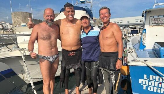En el grupo, el español Antonio Gil, natural de Tarifa y con traje de neopreno, se ha convertido en el que más veces efectúa esta travesía, al alcanzar ya la duodécima ocasión en la que consigue cruzar a nado estas costas.