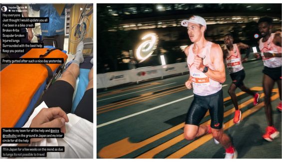 El neozelandés tiene cuatro costillas rotas, además de la escápula, y se encuentra ingresado en un hospital de Tokio, donde el sábado hizo un 'marcón' en el 10K.