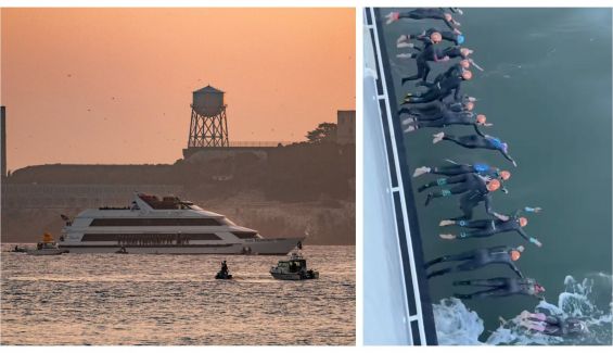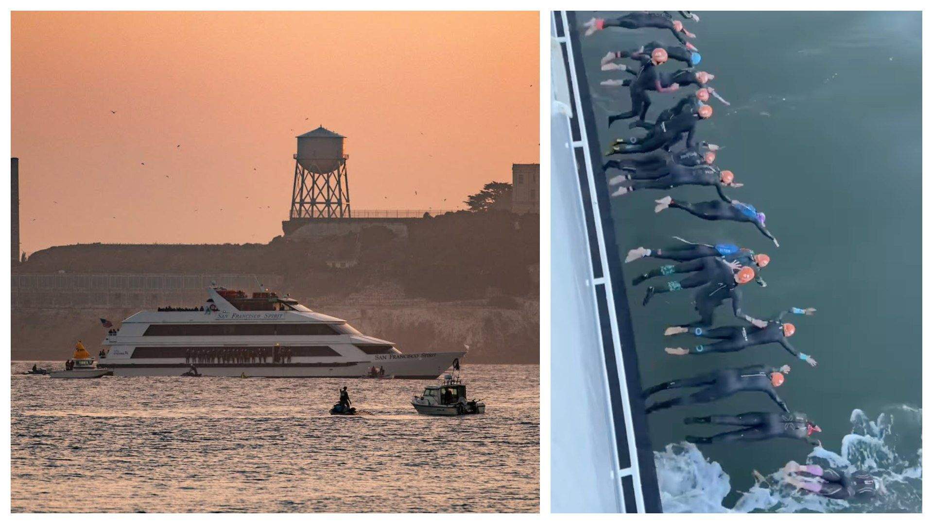 Un triatlón que consta de 80 km de bici y 18 de carrera a pie, precedidos de 2.000 metros de natación en las gélidas aguas de la bahía de San Francisco, con la dificultad añadida del arranque de la prueba: los participantes tienen que saltar al agua desde un barco anclado a pocos metros de la mítica prisión, ahora convertida en atracción turística. Muchos optan por lanzarse de pie para evitar zambullirse de cabeza. De una forma o de otra, la maniobra entraña un riesgo considerable, sobre todo en la carrera de grupos de edad, con muchos más participantes en liza que en la prueba PRO.