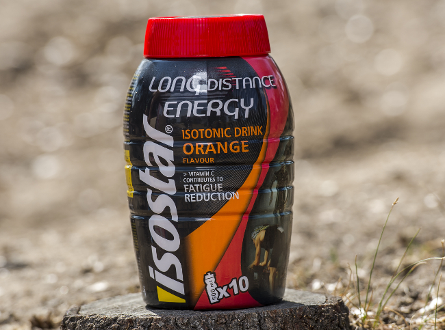 Isostar, una de las marcas clásicas de nutrición deportiva, tiene una amplia gama de productos hidratantes y de aporte de energía. Hemos elegido para este reportaje el Long Distance Energy, concebido para esfuerzos de muy larga duración, superiores a las 3 horas. Para ello, además de su fórmula isotónica que asegura la reposición de un mineral básico como el sodio (0,15 gr cada 500 ml de bebida), aporta una muy alta cantidad de carbohidratos simples y complejos (75 gr por 500 ml de bebida), y vitaminas, especialmente la antioxidante C y también E y B1, que contribuyen a disminur la sensación de cansancio. Se presenta en bote de 790 gramos, en sabor naranja, con el que se preparan 5 litros de bebida. 14,95 euros